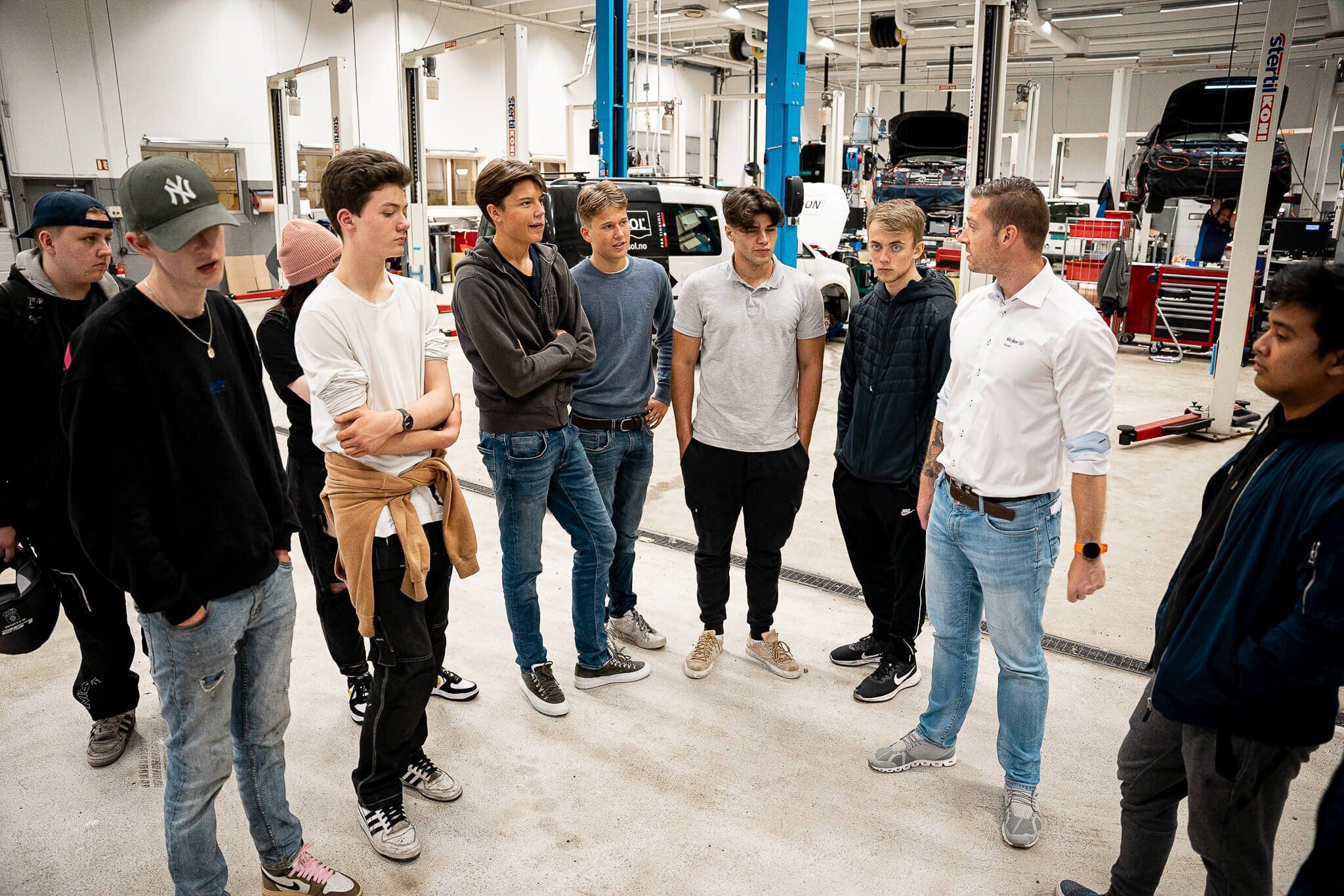 Dagens besøk består av elever som alle går på teknologi- og industrifag – bedre kjent som TIP. Til felles for de alle er at de elsker å skru, er motorinteresserte og ser for seg en framtid som bilmekaniker. Bilfaget lette kjøretøy, som fagretningen heter, er en av seks som Møller Bil Skolen tilbyr. De andre er bilskadefaget, billakkererfaget, reservedelsfaget, salg og service samt hjulutrustningsfaget.