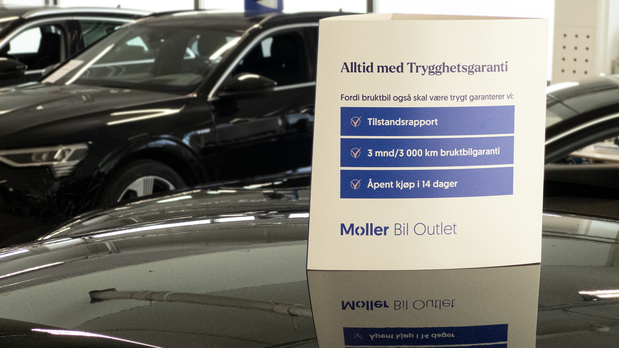 For at du skal føle deg trygg når du kjøper en bruktbil er Møller Bil først ute med å tilby en Trygghetsgaranti på alle outlet-biler. Den nye og unike garantien er basert på tilbakemeldinger og innsikt.
