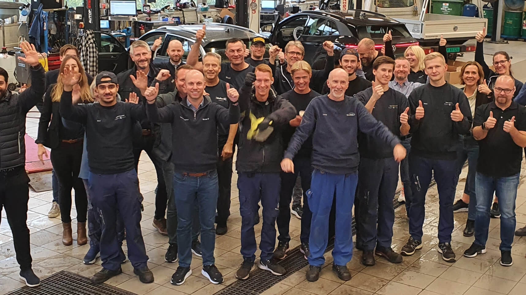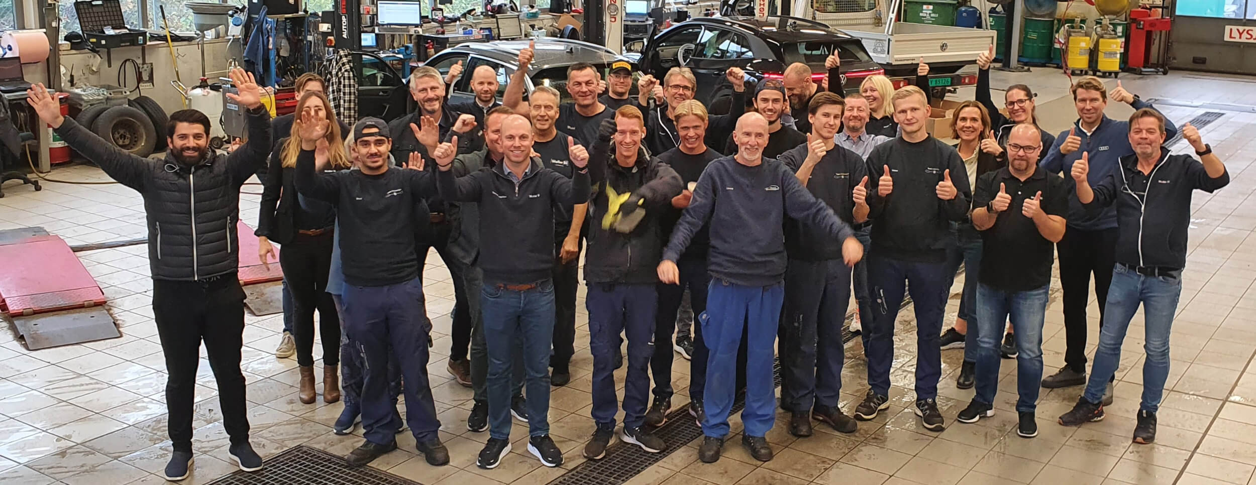Tommel opp fra teamet hos Møller Bil i Sandefjord.