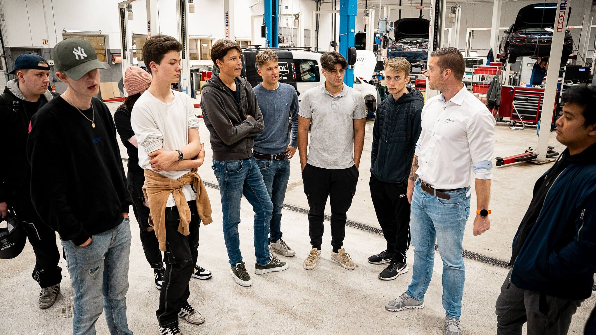 Dagens besøk består av elever som alle går på teknologi- og industrifag – bedre kjent som TIP. Til felles for de alle er at de elsker å skru, er motorinteresserte og ser for seg en framtid som bilmekaniker. Bilfaget lette kjøretøy, som fagretningen heter, er en av seks som Møller Bil Skolen tilbyr. De andre er bilskadefaget, billakkererfaget, reservedelsfaget, salg og service samt hjulutrustningsfaget.