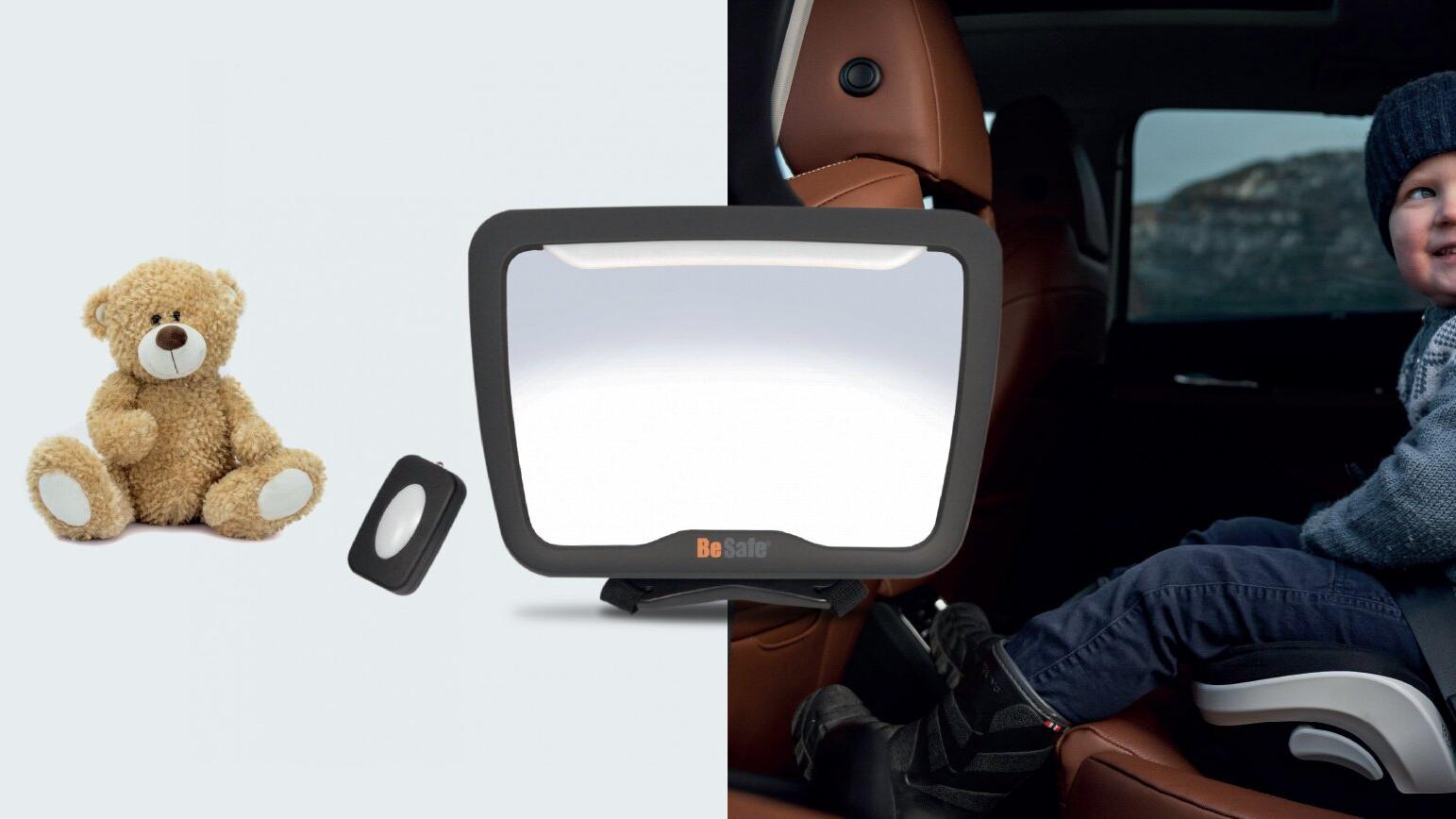 BeSafe Baby Mirror XL2 gjør det mulig for deg å ha kontakt med ditt bakovervendte barn både i dagslys og i mørket. Lyset på speilet kontrolleres enkelt ved hjelp av en fjernkontroll. Speilet montes rundt bilens hodestøtte med to monteringsstropper og er kollisjonstestet i 64 km/t for høyeste grad av sikkerhet.